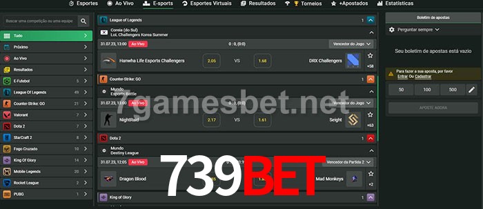 O 739Bet oferece uma grande seleção de opções de apostas em e-sports com probabilidades competitivas